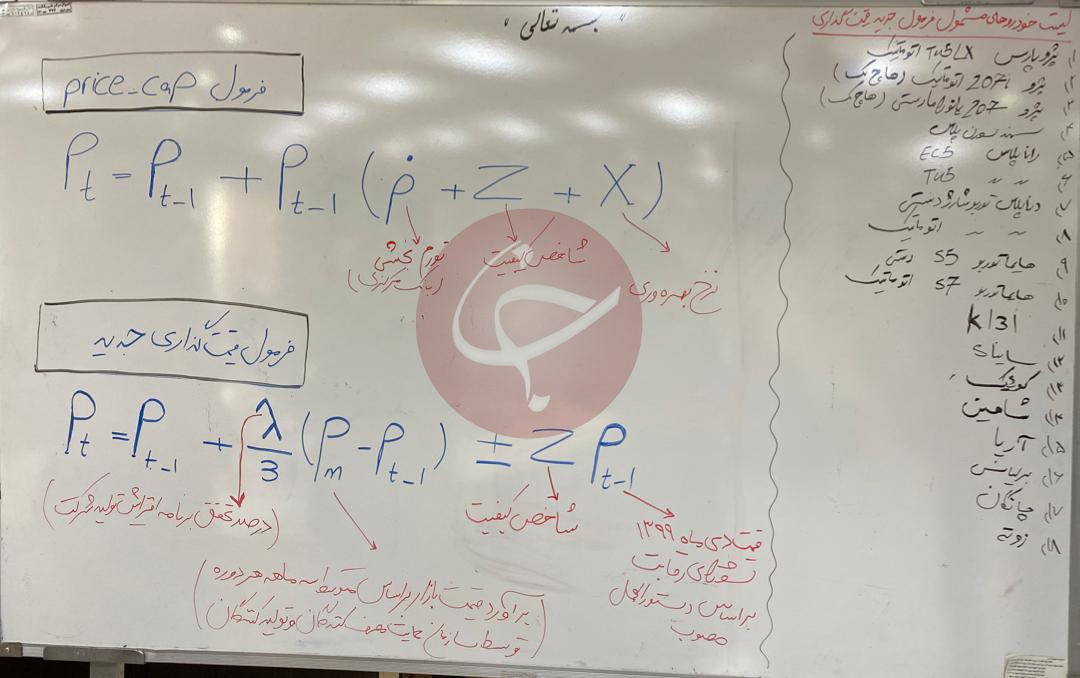 آنچنان که در عکس مشخص است قیمتگذاری خودروها از طریق یک فرمول جدید انجام میشود که همزمان به فاکتورهایی مثل تیراژ تولید، شاخص کیفیت، درصد تحقق برنامه افزایش تولید! و حتی تورم اعلام شده از سوی بانک مرکزی توجه دارد. خوشبختانه چنین افراد متخصصی در صنعت خودروسازی داریم که مو را از ماست میکشند و اجازه نمیدهند که ماشینهای بهروزی مثل پراید ۱۱۱ یا پژو ۴۰۵ وارد کانال یک میلیارد تومان شوند!