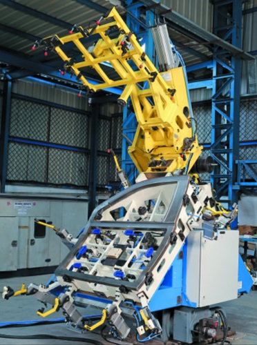 در بخش دوم، با استفاده از یک جیگ اصلی (که Main Jig یا جیگ مادر هم نامیده میشود) چهار مجموعه اصلی کف، پنلهای جانبی و سقف به یکدیگر متصل میشوند. خروجی جیگ اصلی یک اتاق کامل است. با توجه به اینکه بدنه خودرو از این مرحله تقریبا کامل شده است، برای نقل و انتقال بر روی گاریهای مخصوصی قرار میگیرد که اسکید Skid نامیده میشود. استفاده از خطوط انتقال خودکار یا کانوایرها از مرحله شروع میشود که میتواند بر روی زمین یا سقف نصب شده باشد. در سالنهای بدنه سازی، استفاده از کانوایرهای زمینی متداولتر است.