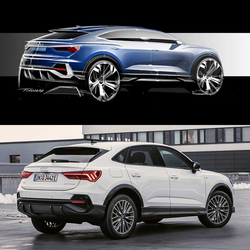 یکی از شایعترین ترفندها، یا بهتر بگوییم روندها در طراحی خودرو، خلق تناسباتی اغراق شده یا اصطلاحاً وحشی است که تقریباً هرگز نمیتواند رنگ واقعیت به خود بگیرد. در میان رایجترین آنها، چرخ و رینگهای بزرگ سایز، سطح شیشه کَم نسبت به بدنه یا ستونهای بهشدت خوابیده جلو قرار دارند که در نمونه طرحهایی از آئودی Q3 Sportback یا بامو سری ۲ اکتیوتورر میتوانید مشاهده کنید.
