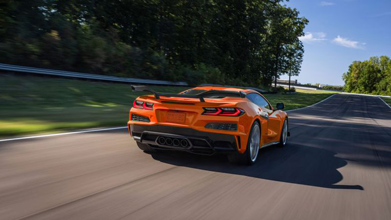 در قسمت عقب کوروت Z06 ۲۰۲۳ یک فاسیا جدید وجود دارد که خروجیهای اگزوز چهار گانه شناور Z06 را در خود جای داده است و طراحی آن چندان مورد توجه قرار گرفته است. این موتور قدرتمند مانند هیچ گزینه دیگری که تاکنون برای کوروت ارائه شده نیست؛ مگر برای خودرو مسابقهای C8.R که خودش هم بر پایه آن ساخته شده است و شتابگیری از صفر تا ۱۰۰ کیلومتر بر ساعت Z06 را تنها در ۲٫۶ ثانیه ممکن میکند.