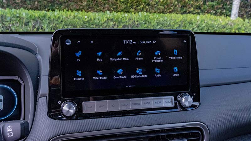 تغییرات هیوندای در فضای داخلی شامل صفحه‌ نمایش بزرگ‌تر ۱۰٫۲۵ اینچی مرکزی با قابلیت سازگاری با اپل کارپلی و اندروید اتو، برخی تزیینات جدید در اطراف داشبورد، پشتیبانی از چند دستگاه بلوتوث و نمایشگر جلوداشبورد دیجیتال ۱۰٫۲۵ اینچی است. همچنین، مشتریان می‌توانند سیستم BlueLink هیوندای را ارتقا دهند. این سیستم به مشتریان امکان می‌دهد با گوشی‌های هوشمند تلفن‌ همراه خود، خودرو الکتریکی کنا را کنترل کنند. این قابلیت اطلاعات مهمی درباره‌ شعاع حرکتی در دسترس و زمان شارژ و محل ایستگاه‌های شارژ در نزدیکی به رانندگان می‌دهد.