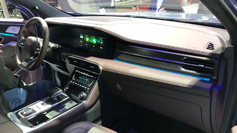 در فضای داخل کابین نیز با محیطی لوکس و فناورانه روبهرو میشویم. از صفحه نمایشهای باریک برای نمایش اطلاعات نشانگرها و ارتباط با سیستم سرگرمی استفاده شده است. دوربینهای همهجانبه و شارژر بیسیم تلفن همراه بخشی از تجهیزات جتور X90 پلاس را تشکیل میدهد. جانمایی صندلیها برای مدل ۶ صندلی به شکل ۲+۲+۲ است و در مدل ۷ سرنشین به شکل ۲+۳+۲ است.