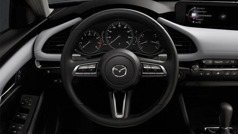 در مزدا ۳ خطوط شکسته و تیز طراحیهای مدرن جای خود را به موجهای سینوسی و روان دادهاند. گویا یک شیشهگر قهار ساعتها وقت صرف کرده و این بدنه را از شیشه مذاب شکل داده است و حالا با یک بدنه حجیم اما صیقلی مواجه هستیم. در این خودرو حجمها با فرمهای محدب و مقعر روی بدنه ایجاد میشوند و ادوات مختلف مانند چراغ جلو و عقب در این میان جای میگیرند.