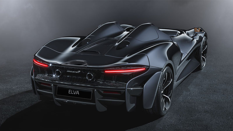 نمای عقب مکلارن الوا را تنها با یک کلام میتوان توصیف کرد: پیچیدگی. سپر مشبک عقب، که چراغهای نواری و خروجیهای دوگانه اگزوز را در خود جای داده است، بخشی از این پیچیدگی محسوب میشود. به این موارد باید هواکشهای دو سمت سپر را نیز اضافه کرد.