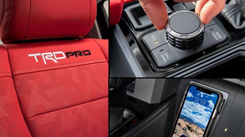 همچنین در پیکاپ تاندرا ۲۰۲۲ شاهد کابین جادارتر، متریال باکیفیتتر و تکنولوژیهای بیشتری هم خواهیم بود. بسته به مدل انتخابی در کنسول میانی، یک نمایشگر ۸ تا ۱۴ اینچی لمسی توجه بیننده را به خود جلب میکند که با تکنولوژی جدید اطلاعرسانی و ارتباطی خود شما را شگفتزده خواهد کرد. اپل کار پلی و اندروید آتو در این مدل بهصورت استاندارد ارائه شده است. همچنین امکان استفاده از سرویس آمازون موزیک و اپل پادکست نیز بهزودی قابلدسترس خواهد بود.