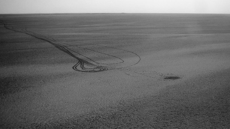 تصمیم گرفتیم به صورت دشتبان با خودروها به سمت شمال حرکت کنیم با وجود خودروهای نامناسب و رانندههای ناشی وارد شده به گروه، کار تجسس بسیار سخت شده بود. تا نیمه شب تلاش کردیم تصمیم گرفتیم شب را در آنجا به صبح برسانیم. صبح ماشینهای اضافی را برگرداندیم و تصمیم گرفتیم باتلاقها را دور بزنیم. پس از گشت در منطقه و عبور از چندین رودخانه نمک، به دو ردّ پای تازه برخوردیم گروه به شدت خوشحال شد. دنبال ردّ پیاده به راه افتادیم. بطریهای تازه آب در سمت جنوب غرب در فاصله دور دکلهای دیدبانی دیده میشدند. مطمئن بودیم نفرات را پیدا کردیم. با خودمان گفتیم حتما دکلها را دیده و به سمت آنها حرکت کردهاند. شروع به گشتن کردیم ولی هیچچیزی پیدا نکردیم.